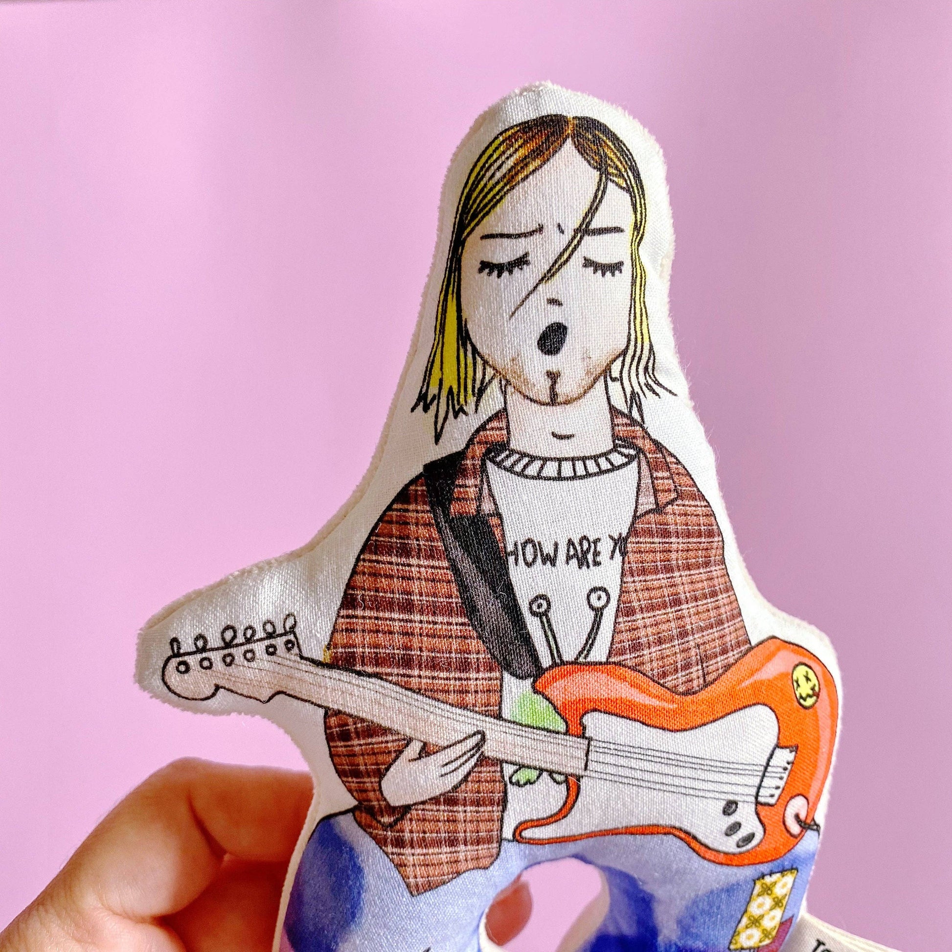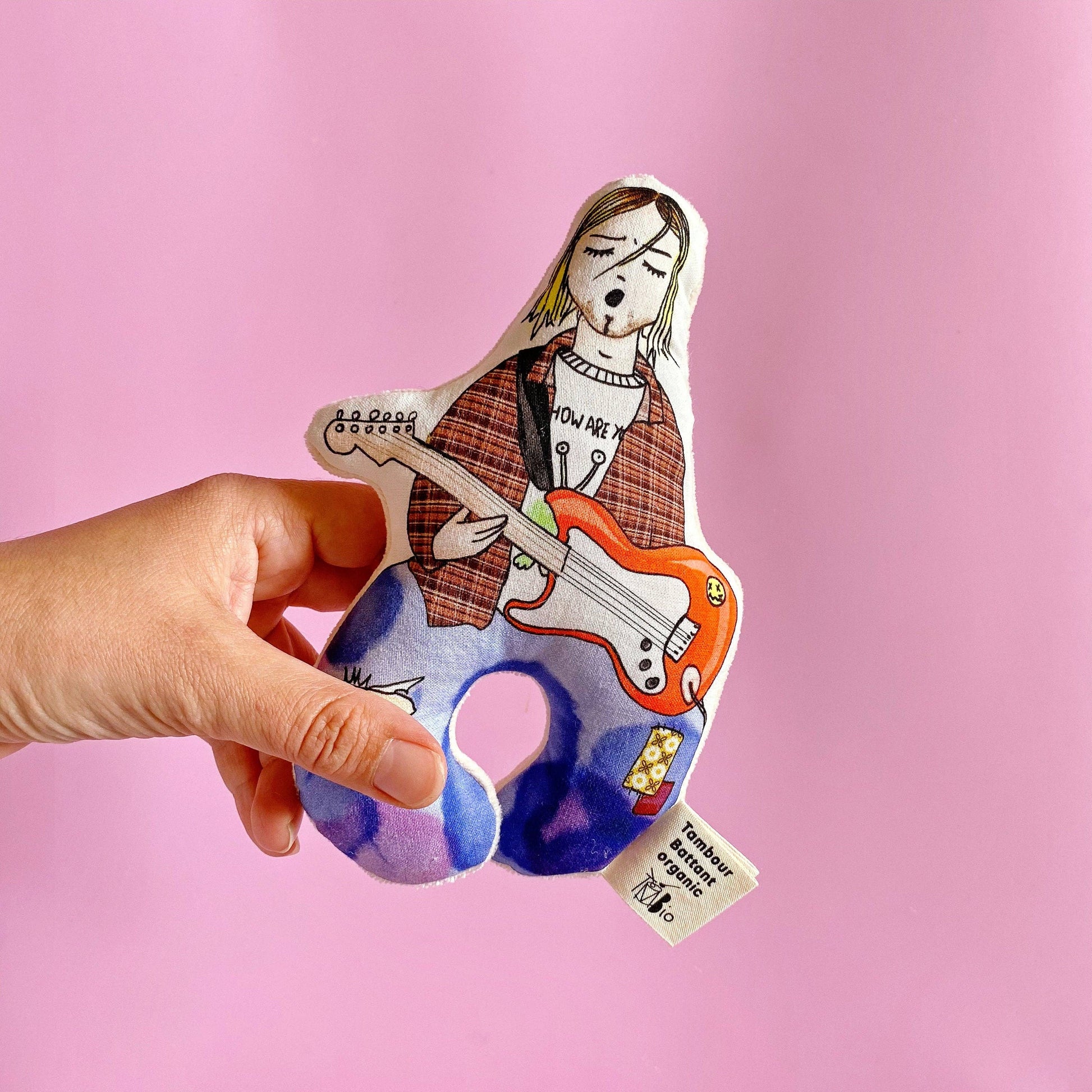 🎶 "Come as you are" 🎶Du er nemlig fantastisk, lige præcis som du er! Denne rangle er inspireret af den fantastiske Curt Cobain fra 90er grungebandet Nirvana. 🤘Musikken havde kant, men ranglen her er blød og spændende med sine klare farver og blide raslen, der fanger babys opmærksomhed med det samme. Samtidig er den skabt med omtanke – i små serier og i materialer, du trygt kan give til din baby fra første dag. Den perfekt gave til små musikelskere!